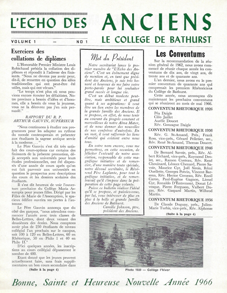 - L'Écho des Anciens le College de Bathurst 1966 - Apr 1976