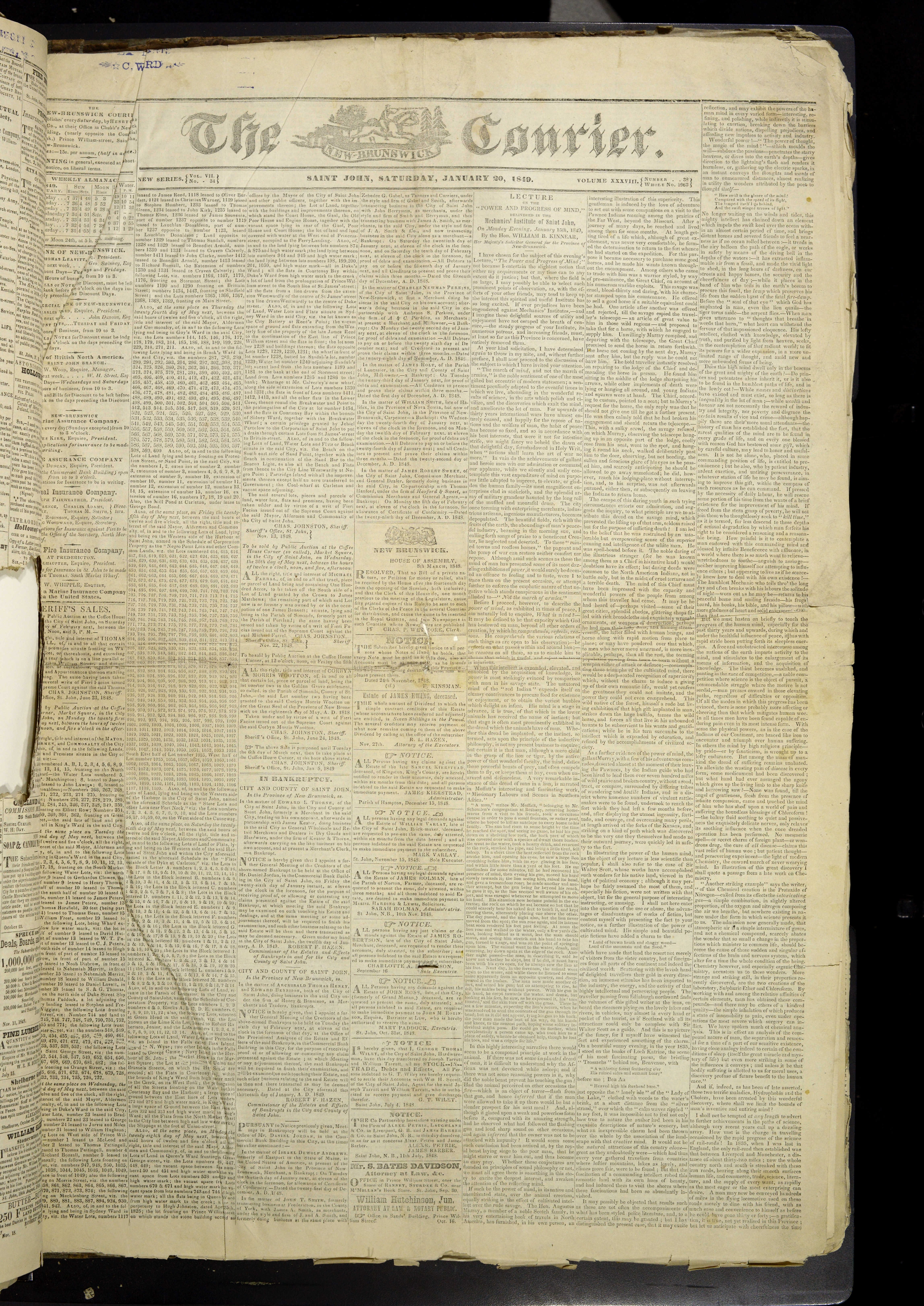 The New-Brunswick Courier: 1849-01-20 - Page 01