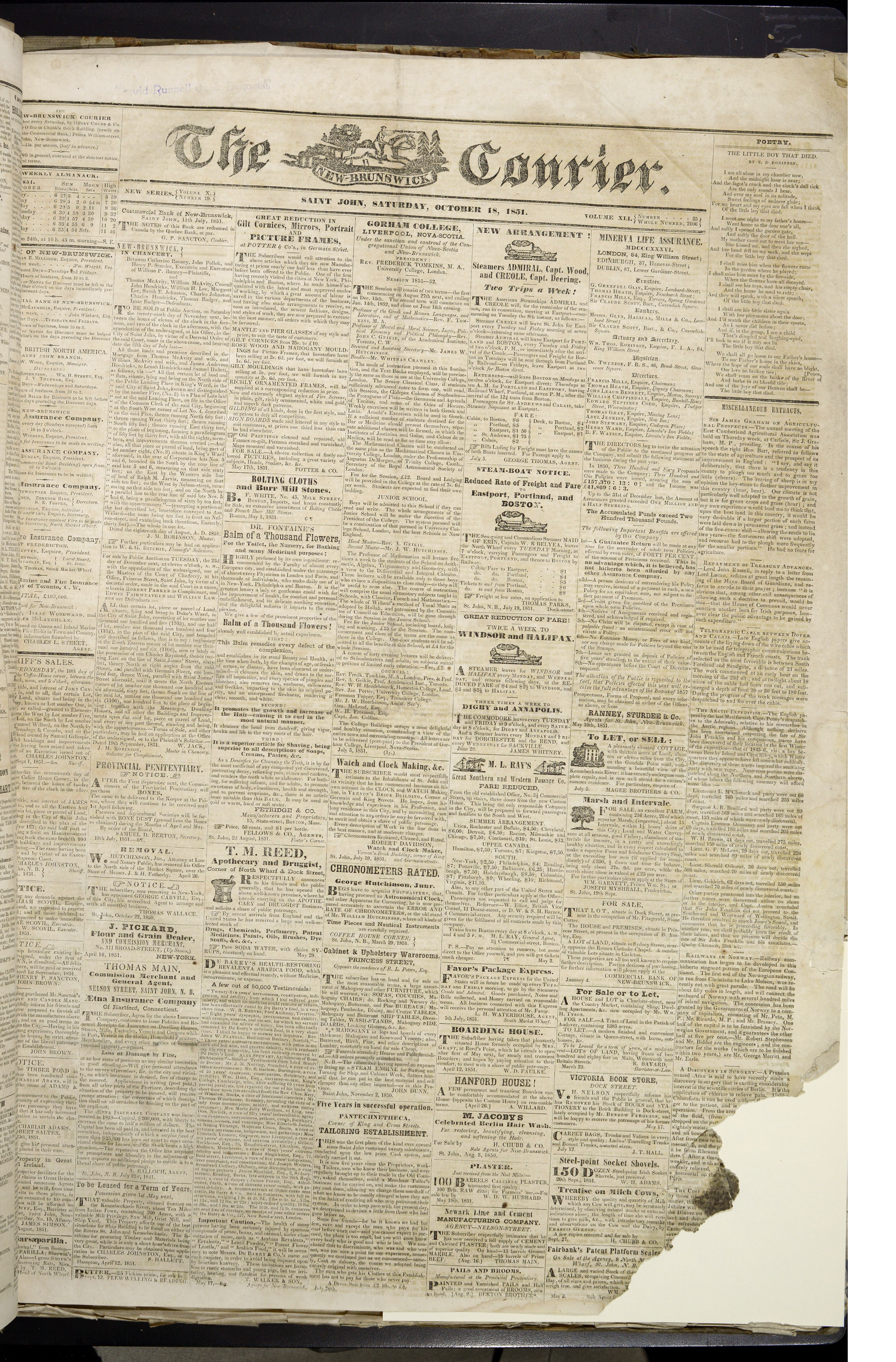 The New-Brunswick Courier: 1851-10-18 - Page 01